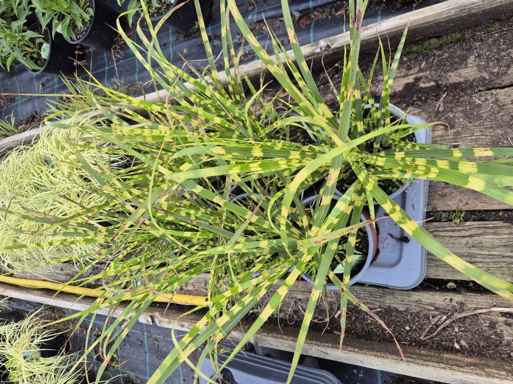 Miscanthus sinensis 'Zebrinus', populært kendt som "Zebragræs" i Danmark, er en prydgræs, der virkelig fanger øjet. Dens grønne blade med karakteristiske hvid-gule tværstriber tilføjer en spændende kontrast til havens øvrige grønne beplantning.