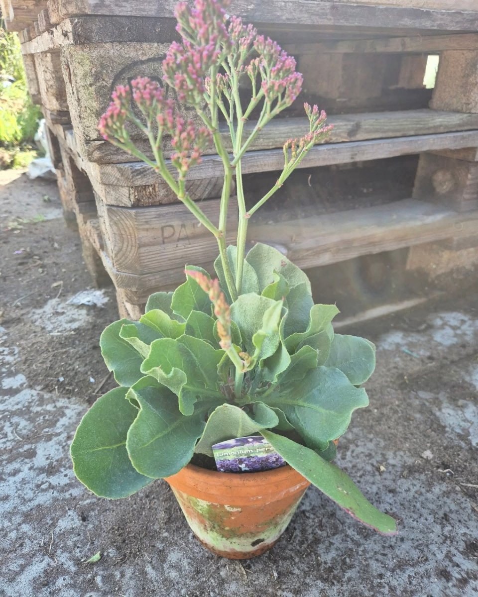 Limonium perezii, også kendt som Limonium tataricum eller hindebæger, er en robust, stedsegrøn prydplante med store, lilla blomsterstande og læderagtige, mørke blade. Den bruges ofte som en baggrundsplante eller i staudebede for at tilføje farve og tekstur til haven.